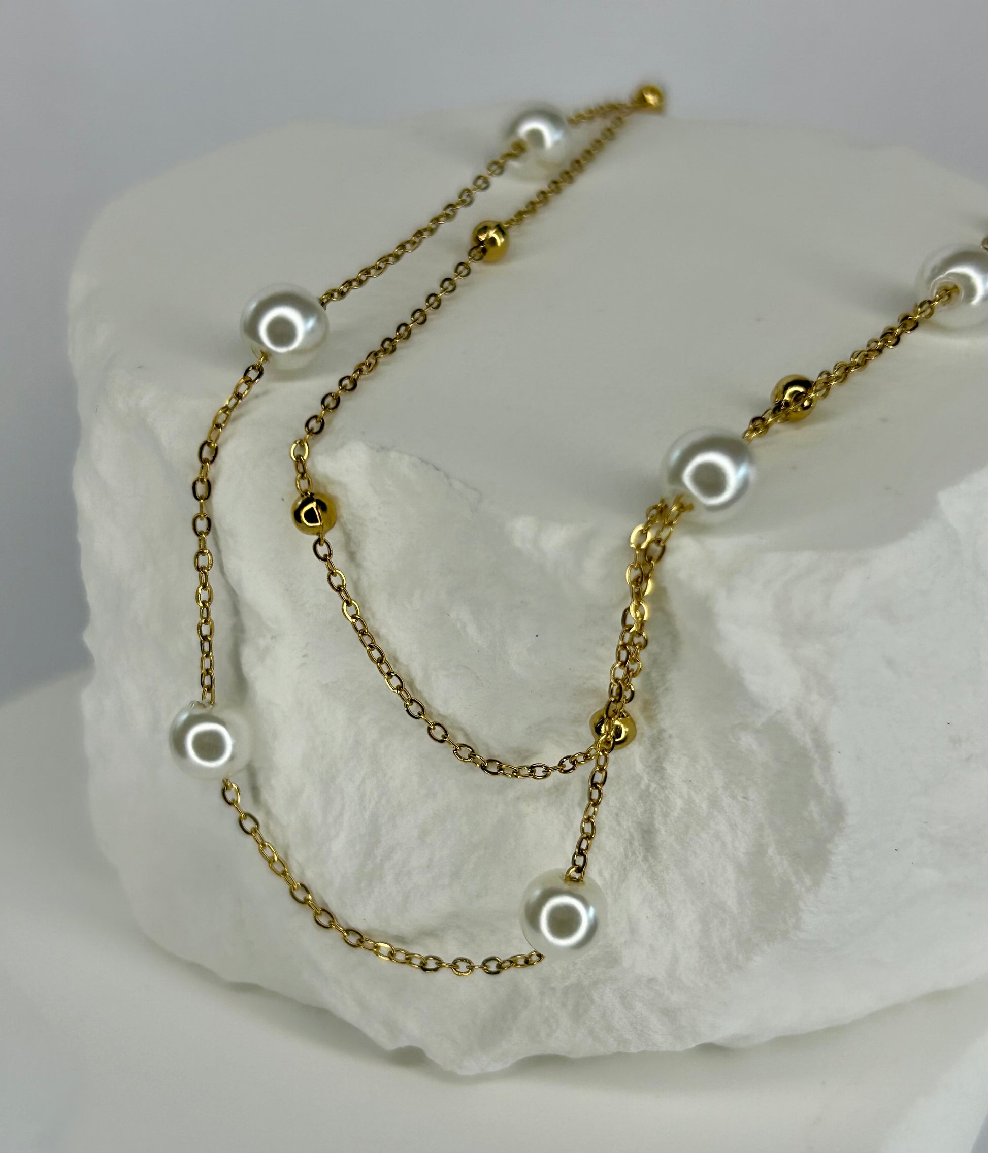 Pearl & Gold Bead Double Chain Necklace